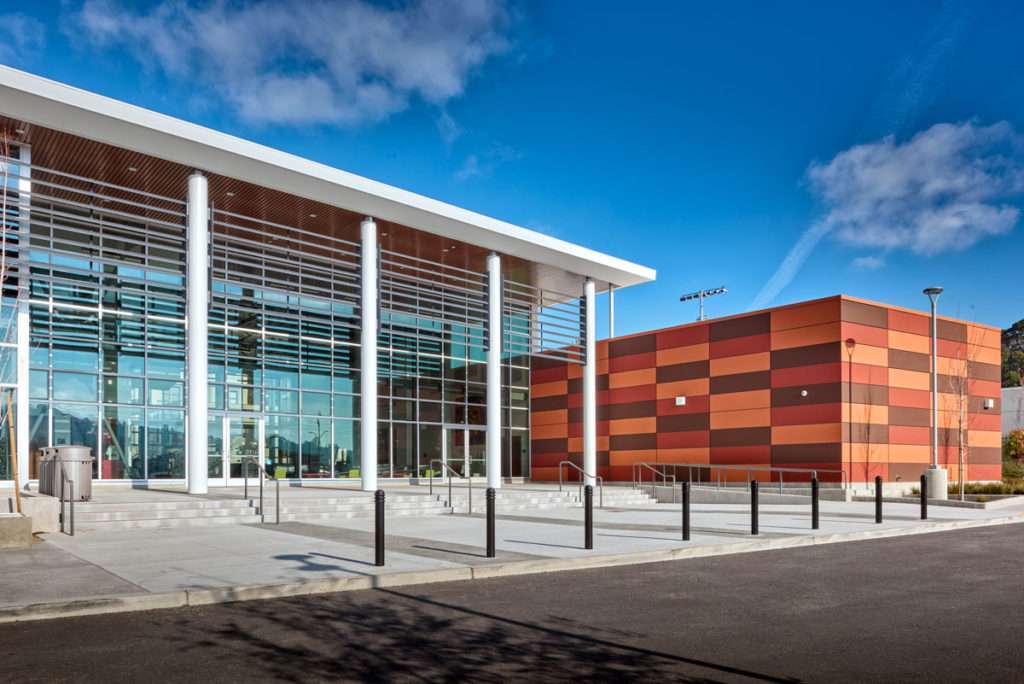 Our team analyzed the surrounding topography, which sits in a flood plain close to San Rafael Bay. We raised the finished floor above the base flood elevation. Stormwater that fell on the impervious site areas were calculated and treated through the landscape. To complement strategically placed plantings, we also utilized pervious (synthetic) turf in key areas to reduce the volume of water requiring treatment. The result is a landscape that integrates nicely with the new facility while providing efficient stormwater management compliance using sustainable methods.